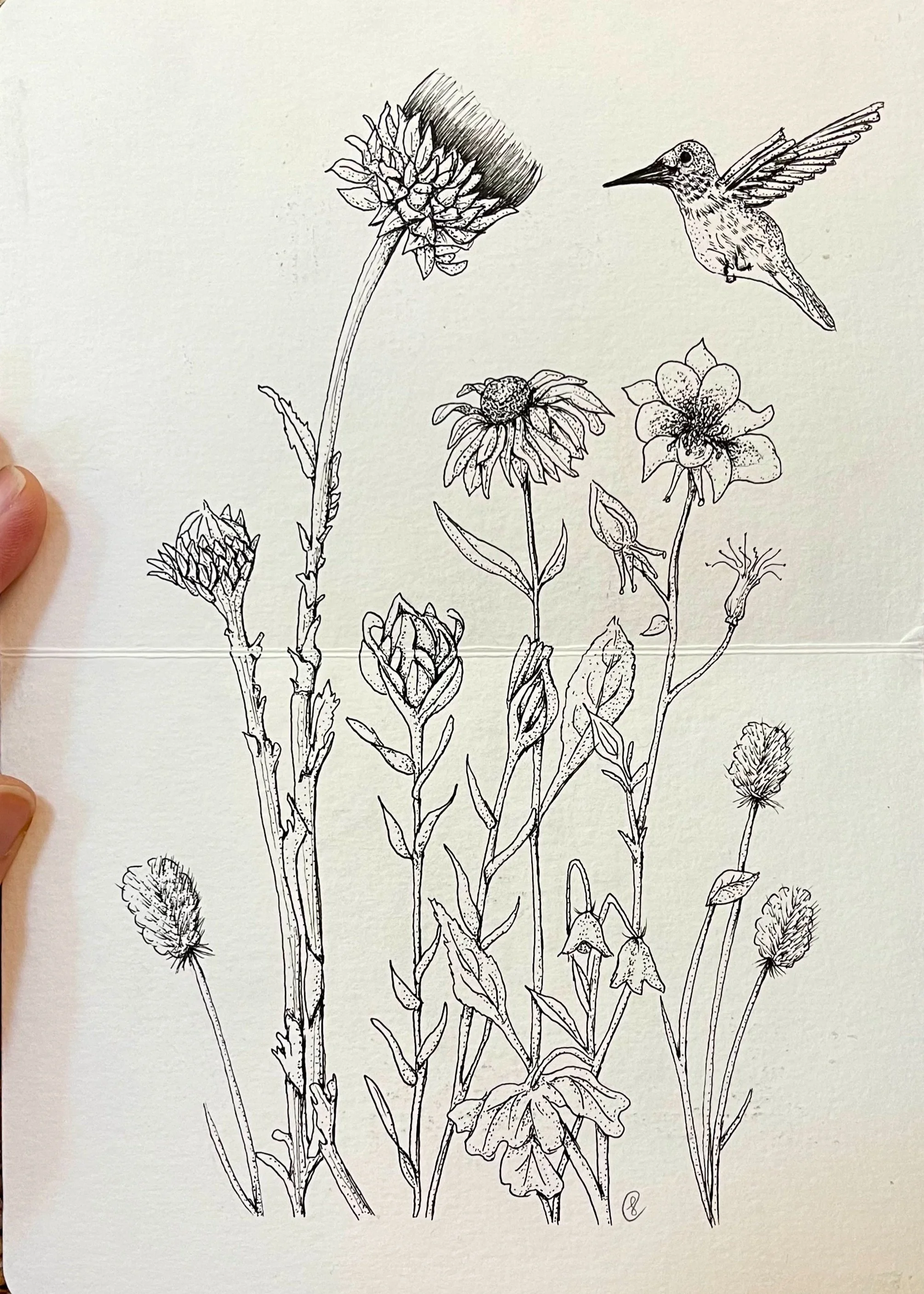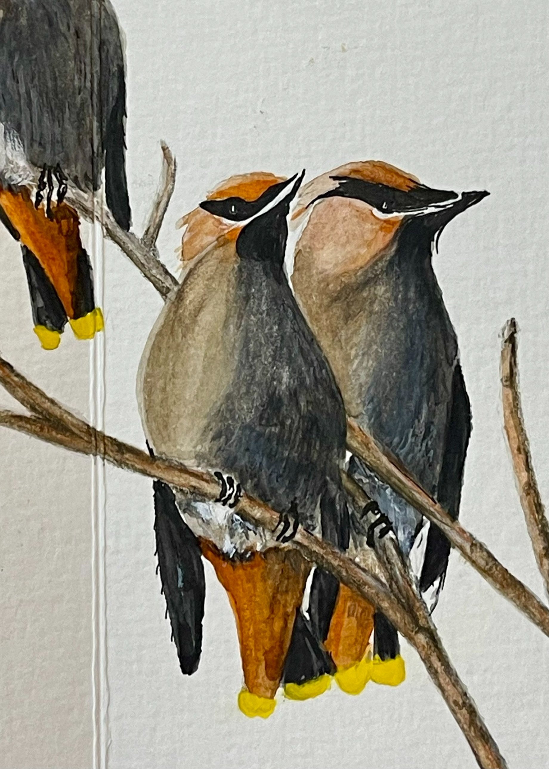 I’ve always loved art and photography and with my background in science and finance, I found I was always focused on the details. The ability to see and focus on the details in nature are why I pursued a Certificate in Botanical Illustration after I retired. The program spoke to my love of nature and taught me how to capture some of the abundant natural beauty that surrounds me in Colorado. I especially enjoy using watercolor to express the elegance of plants, birds and other wildlife. The bohemian waxwings were a rare visitor to Colorado last year and I felt their visit needed to be recorded. The wildflowers were inspired by the beautiful bounty of wildflowers we enjoy in the summertime.